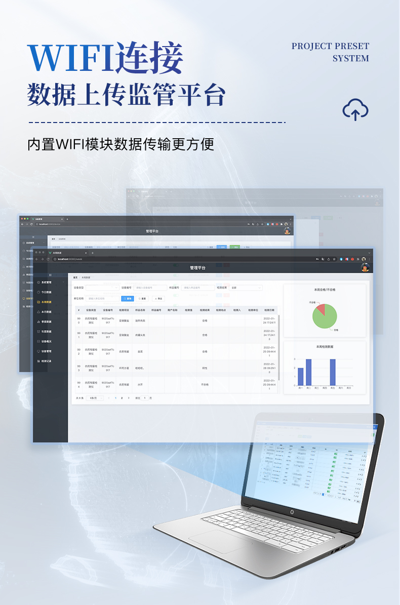 | ◆ 机箱采用工业级ABS工程塑料箱,方便携带,稳固耐用,便于流动测试。 | ◆ 安卓智能操作系统,采用更加**的UI交互界面,具有wifi联网上传、4G联网传输、GPRS无线远传、网线连接功能,快速批量上传数据。 | ◆ 一体化主机,包含多通道光电检测模块、胶体金免疫层析检测模块。 | ◆胶体金模块检测方式:轨道式自动传输扫描,检测完成后自动退出检测卡。 | ◆ CT线自动识别,无需手动调整,检测完成自动显示CT坐标曲线。 | ◆ 仪器具有自检功能:具有开机自检和调零功能,具有自动检测重复性功能。 | ◆ 新一代高速热敏打印机,检测完成可自动打印或批量打印检测报告和二维码。 | ◆ 仪器带有监管平台,数据可局域网和互联网数据上传,检测结果直接传至食品安全监管平台。进行区域食品安全监管及大数据分析处理与数据统计,检测区域农产品安全长短期动态,达到食品安全问题预估、预警 | ◆ 内置强大的数据库,具有多品类多种类样品菜单功能,可灵活选择检测样品,不同的检测通道可同时检测不同的样品项目。也可在仪器上直接编辑录入样品名称、检测指标、送检单位等信息并保存进样品数据库。 | ◆产品内置操作演示视频,是您身边的化验指导专家。 | ◆ 样品处理简单省力,整体操作快速、安全、便捷。 | ◆ 高灵敏度,高检测精度,高重复性精度,扫描式高精度光学传感器。 | ◆ 结果判定线可修改,对照值标定值可保存,断电不丢失数据。 | ◆ 兼容市场上所有的胶体金卡,使用耗材不受限制。 | ◆ 仪器具有重新校准、锁定、恢复出厂设置功能。 |