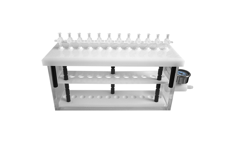 | ●防止交叉感染,防止雾化真空槽设计,操作简单、快速。带有真空表和减压阀; | ●无相分离操作易于收集分析物并可处理小体积样品。 | ●玻璃真空槽采用进口玻璃模具成形,其壁厚均匀,故可承受-80Kpa 以上的高负压。 | ●配套含有 13mm、16mm 收集管(1 包);防交叉污染传输线、溶剂导向针(24 只/包,1 包)。 | ●PP 收集容器架可容纳 10 和 16mm 试管;可为 12 端口的型号选配用 20mL 闪烁样品瓶的板 | ●固相萃取仪的内部试管架由聚丙烯制成,故有**的耐腐蚀性。 | ●配置一体成型 PP 聚丙烯废液槽。 |