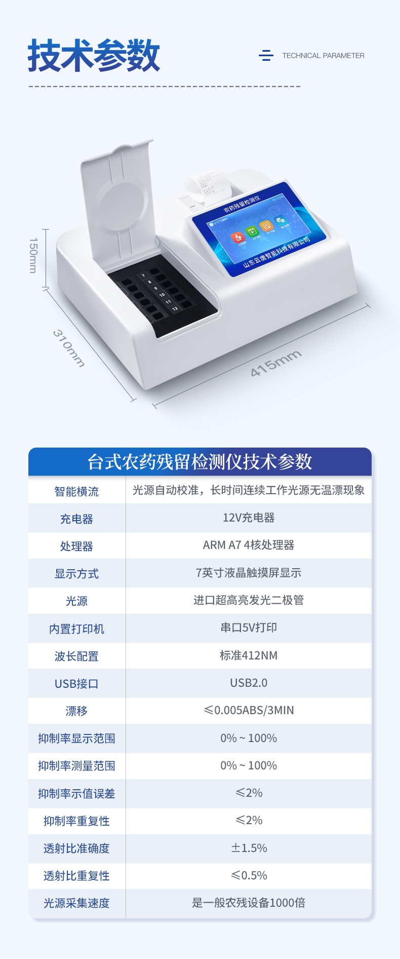8通道农药残留检测仪产品简介:山东云唐智能科技有限公司生产的农药残留检测仪广泛应用于主要用于蔬菜、水果、茶叶、粮食、农副产品等食品中农药残留的快速检测,依据国标GB/T5009.199-2003进行···     更新时间:2025-12-13