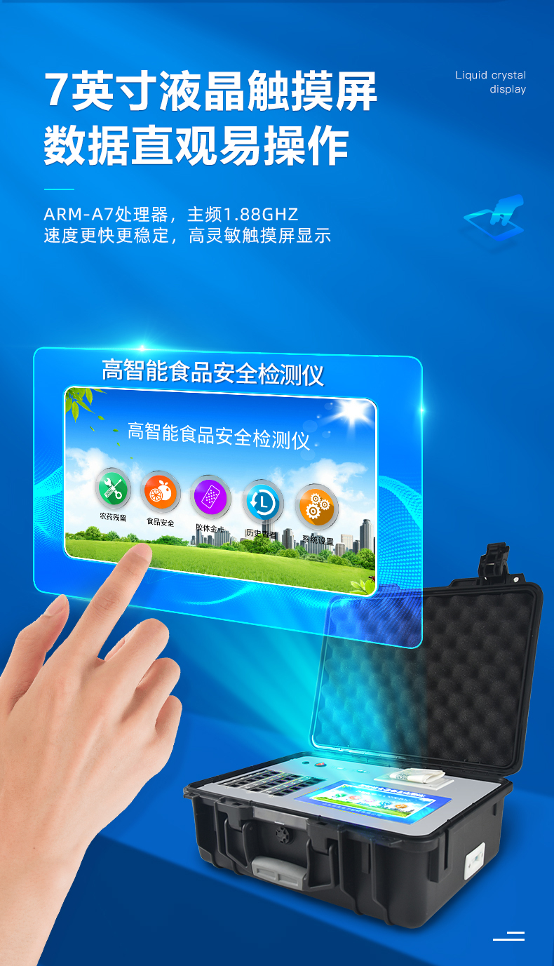 | 1、安卓智能操作系统,采用更加**UI交互界面,仪器具有wifi联网上传、4G联网传输、GPRS无线远传、网线连接功能,快速批量上传数据。 | 2、智能化程度高,仪器具有自检功能:具有开机自检和调零功能,具有自动检测重复性功能。 | 3、新一代高速热敏打印机,检测完成可自动打印或批量打印检测报告和二维码。 | 4、仪器带有监管平台,数据可局域网和互联网数据上传,检测结果直接传至食品安全监管平台。进行区域食品安全监管及大数据分析处理与数据统计,检测区域食品安全长短期动态,达到食品安全问题预估、预警 | 5、一体化主机,包含食品安全检测模块、多通道农药残留检测模块、胶体金免疫层析检测模块。 | 6、一体化便携式快检设备,满足现场及流动检测使用需求,能够在同一软件下实现所有检测项目的检测,并可通过同一窗口直观显示检测结果。 | 7、胶体金模块检测方式:轨道式自动传输扫描,检测完成后自动退出检测卡。 | 8、CT线自动识别,无需手动调整。 | 9、仪器具有多品类多种类样品菜单库,可灵活选择检测样品,不同的检测通道可同时检测不同的样品项目。也可在仪器上直接编辑录入样品名称、检测指标、送检单位等信息并保存进样品数据库。 | 10、仪器内置操作视频,是您身边的化验指导专家。 | 11、样品处理简单省力,整体操作快速、安全、便捷。 | 12、仪器具有自身保护功能,可设置用户名及密码,防止非工作人员操作等。 | 13、高灵敏度,高检测精度,高重复性精度,扫描式高精度光学传感器。 | 14、仪器具有重新校准、锁定、恢复出厂设置功能。 | 15、结果判定线可修改,对照值标定值可保存,断电不丢失数据。 | 16、兼容市场上所有的胶体金卡,使用耗材不受限制,极大增强用户使用体验。 |
