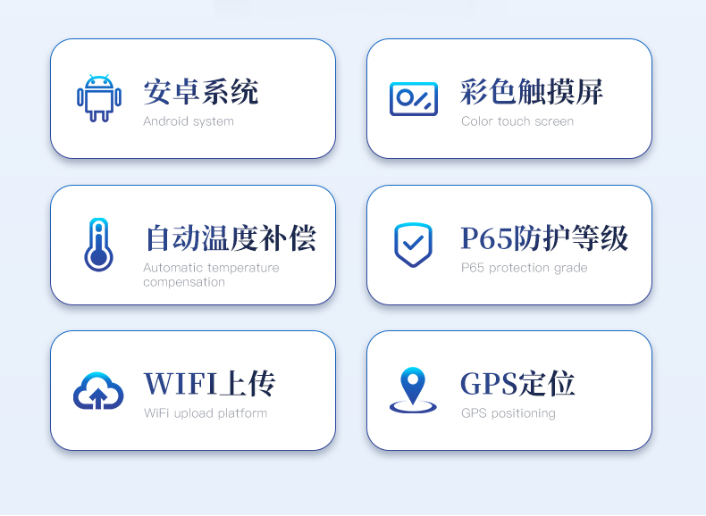 | ●ARM Cortex-M3架构处理器,Android系统。 | ●标准Type-c充电,可直接使用手机充电器为设备进行充电。 | ●连续检测,数据采集时间可按min设定。 | ●支持校准 | ●具有自动温度补偿功能,支持手动温度补偿 | ●配套专用ORP电极、参比电极和不锈钢空心杄,可直接插入土壤 | ●具有读数锁定功能(自动读数),测量结果为终结果,无需换算和计算 | ●检测结果可上传。 | ●检测结果可导出Excel表格,连接电脑进行查看。 | ●检测结果存储容量500万条,支持数据存储、查阅。 | ●支持Wi-Fi,检测结果直接传至监管平台 | ●3.5寸彩色触摸屏,提供更好的用户体验。 | ●P65防护等级。 |