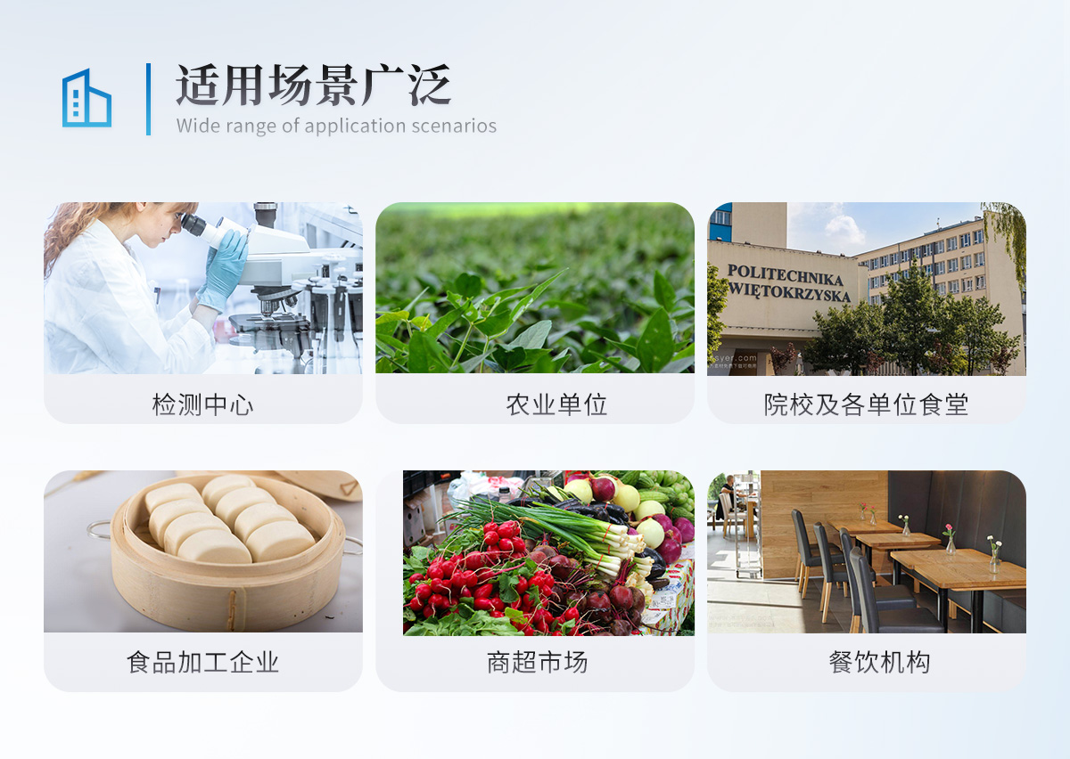 可快速检测各类食品中、水中的尿素的含量,仪器预留其他项目检测程序和端口,根据日后需求可方便的自主增加检测项目。日后可升级为检测,水产品,肉制品,面制品的综合类型仪器。