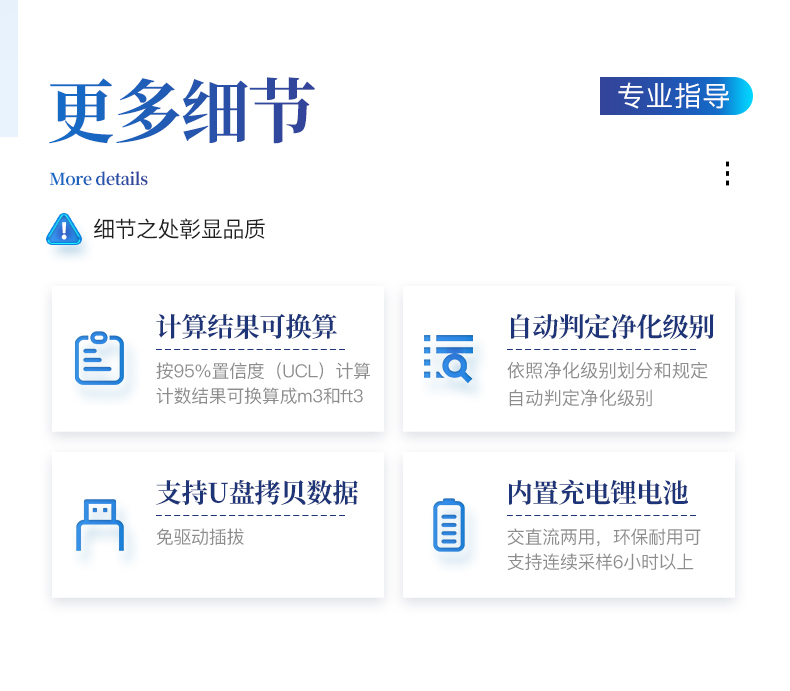 产品简介:智能尘埃粒子计数器,其置信度测量检定标准按照国标GB/T6167-2007和校准规范JJF1190-2008规定的条件,对净化级别进行自动判断。一次采样可同时测得六个粒径通道的尘埃粒子数,并同时显···     更新时间:2026-02-02