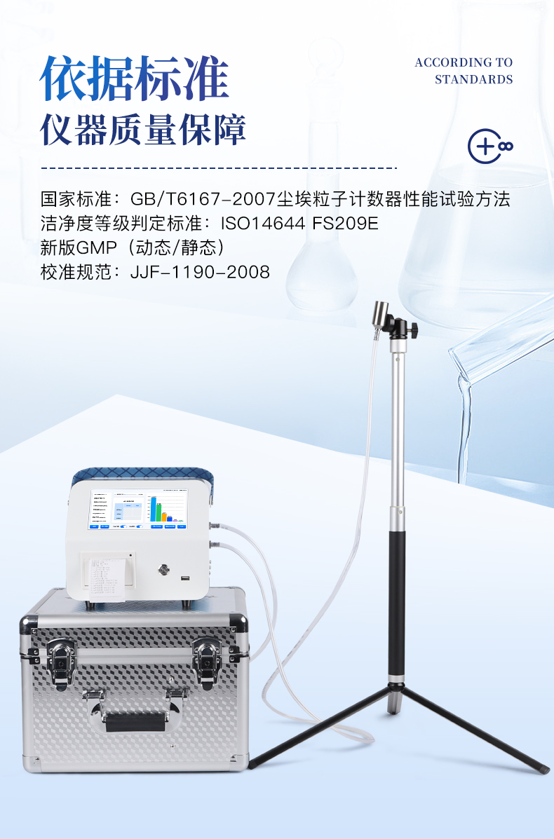 ****:GB/T6167-2007尘埃粒子计数器性能试验方法 洁净度等级判定标准:ISO14644 FS209E ,新版GMP(动态/静态) 校准规范:JJF-1190-2008