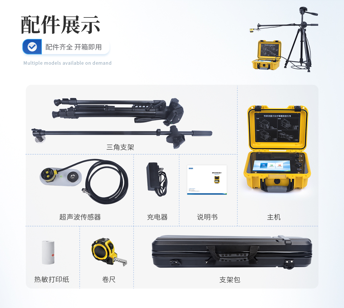 主机、传感器探头、三脚架、 防护包 、充电器、嵌入式打印机