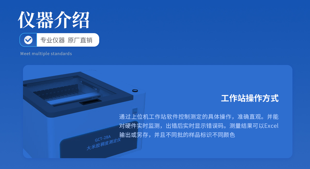 | 1大米胶稠度测定仪主机 1台 配套软件一份(含工作站软件不含工作站电脑) | 2选配:大米胶稠度测定制样机 工作站软件专用电脑 水冷却装置 |