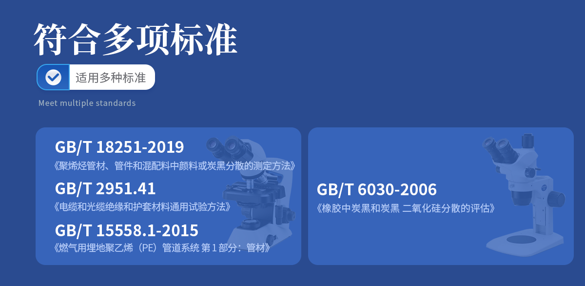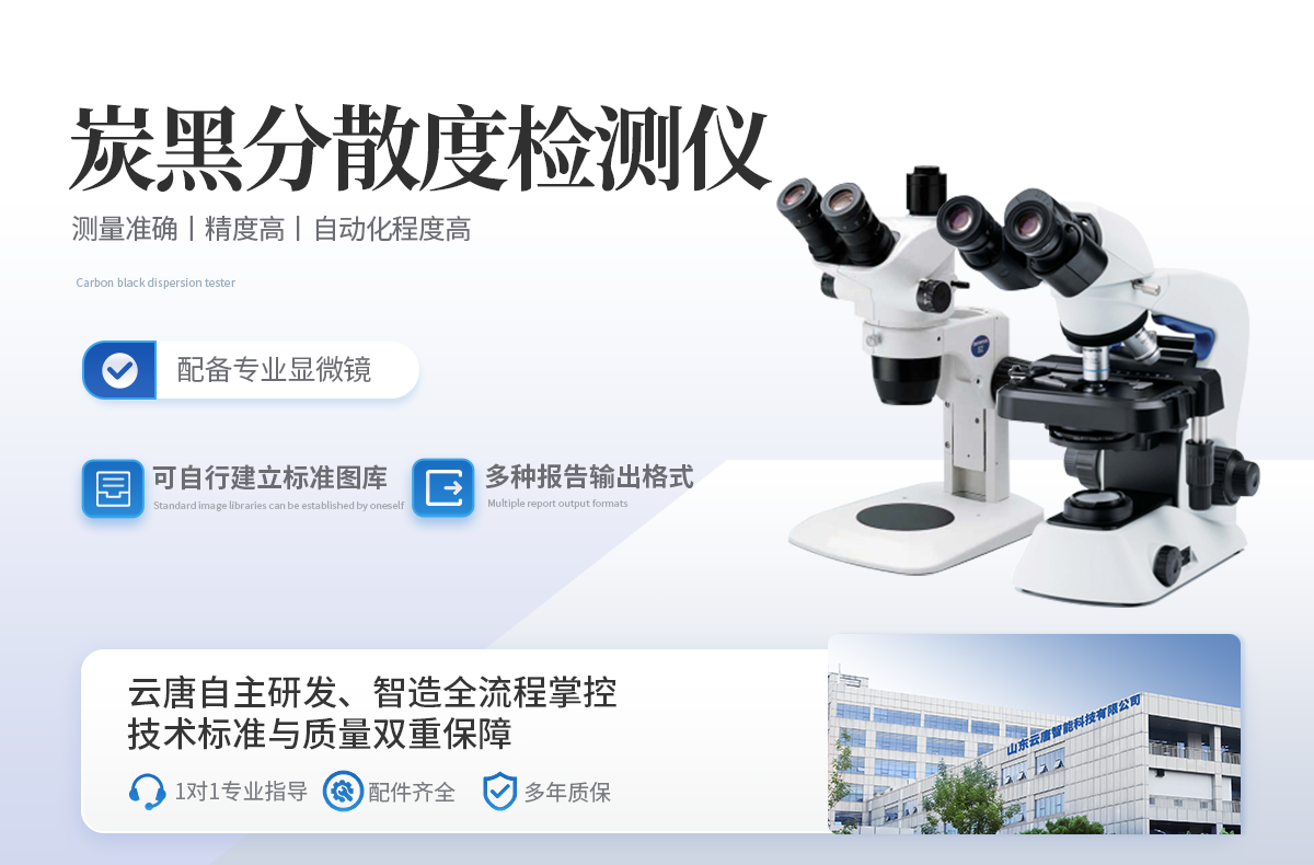 炭黑分散度检测仪是根据国际标准GB/T 6030-2006 橡胶中炭黑和炭黑二氧化硅分散的评估 快速比较法的检测仪器。该仪器适配软件及相应的显微镜,通过对炭黑粒团的尺度、形态、及散布情况的测量,可以建立起这些参数与力学性能、抗静电性能、吸湿性能等宏观性能指标的内在联系。对橡胶材料的品质保障、生产工艺、新品研发产生积极影响,同时推进企业和行业技术水平的快速提升。