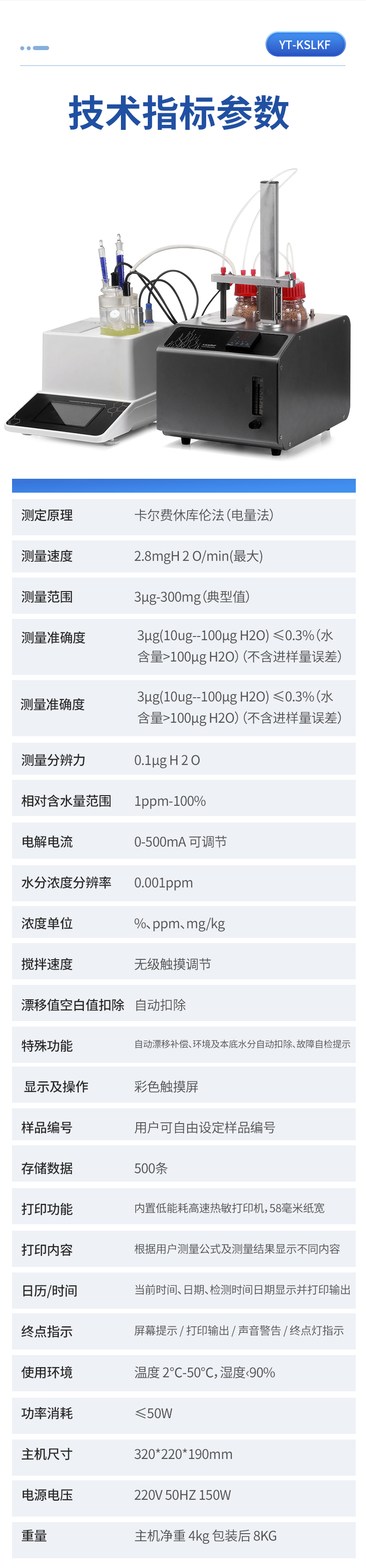产品介绍:YT-KSLKF卡氏水分测定仪填补了国内空白,采用独特的针头设计,一次操作既可以实现载气输入,水汽输出,同时由于新的气路设计用极小的流量就可以实现水分蒸汽的传输,每次进样只需更换···     更新时间:2026-02-02