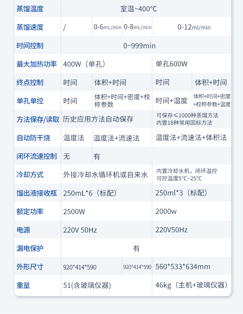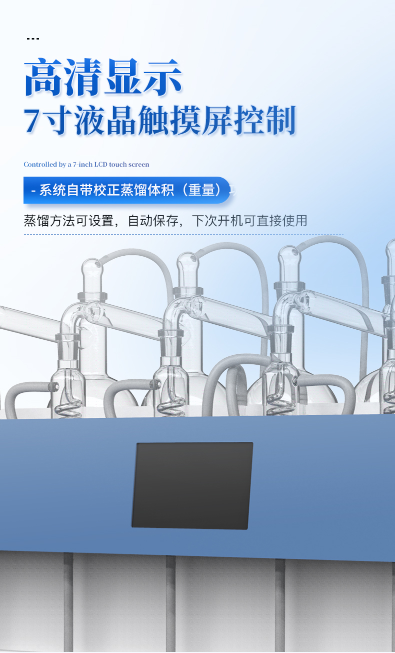 | 方法保存/读取 | 历史应用方法自动保存,自动加载 | 可保存≤1000种蒸馏方法,内置18种常用国标方法 | |