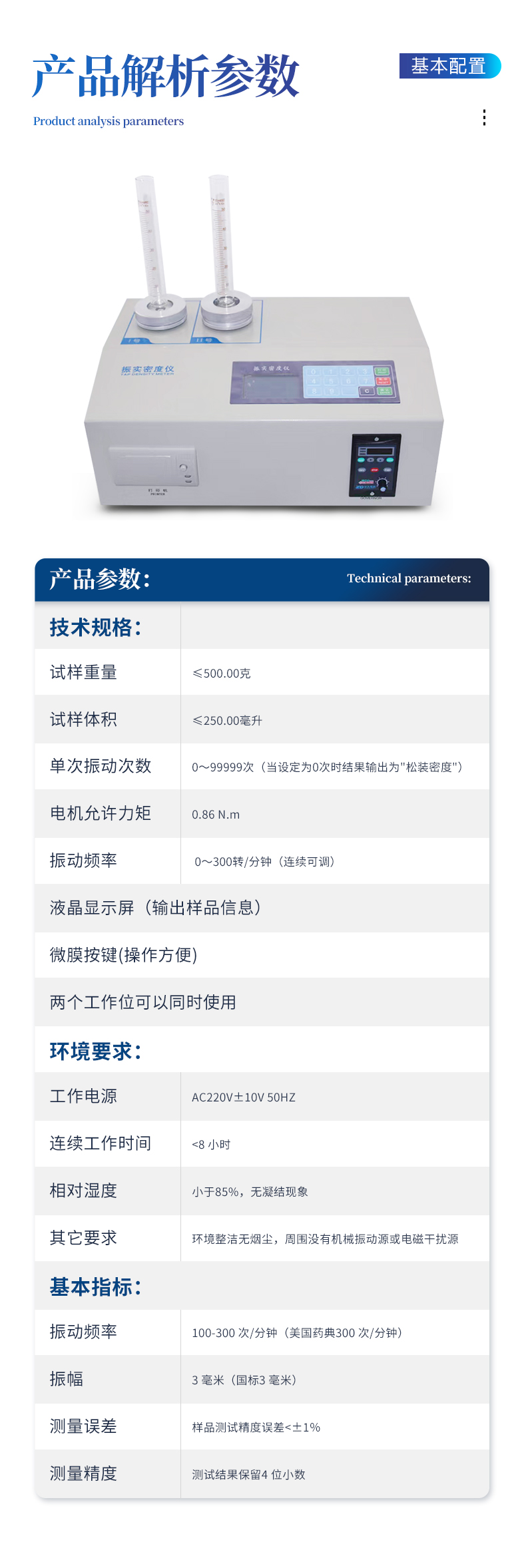 | 振动频率:100-300 次/分钟(美国药典300 次/分钟) | 振幅:3 毫米(国标3 毫米) | 测量误差:样品测试精度误差<±1%<> | 测量精度:测试结果保留4 位小数 |
